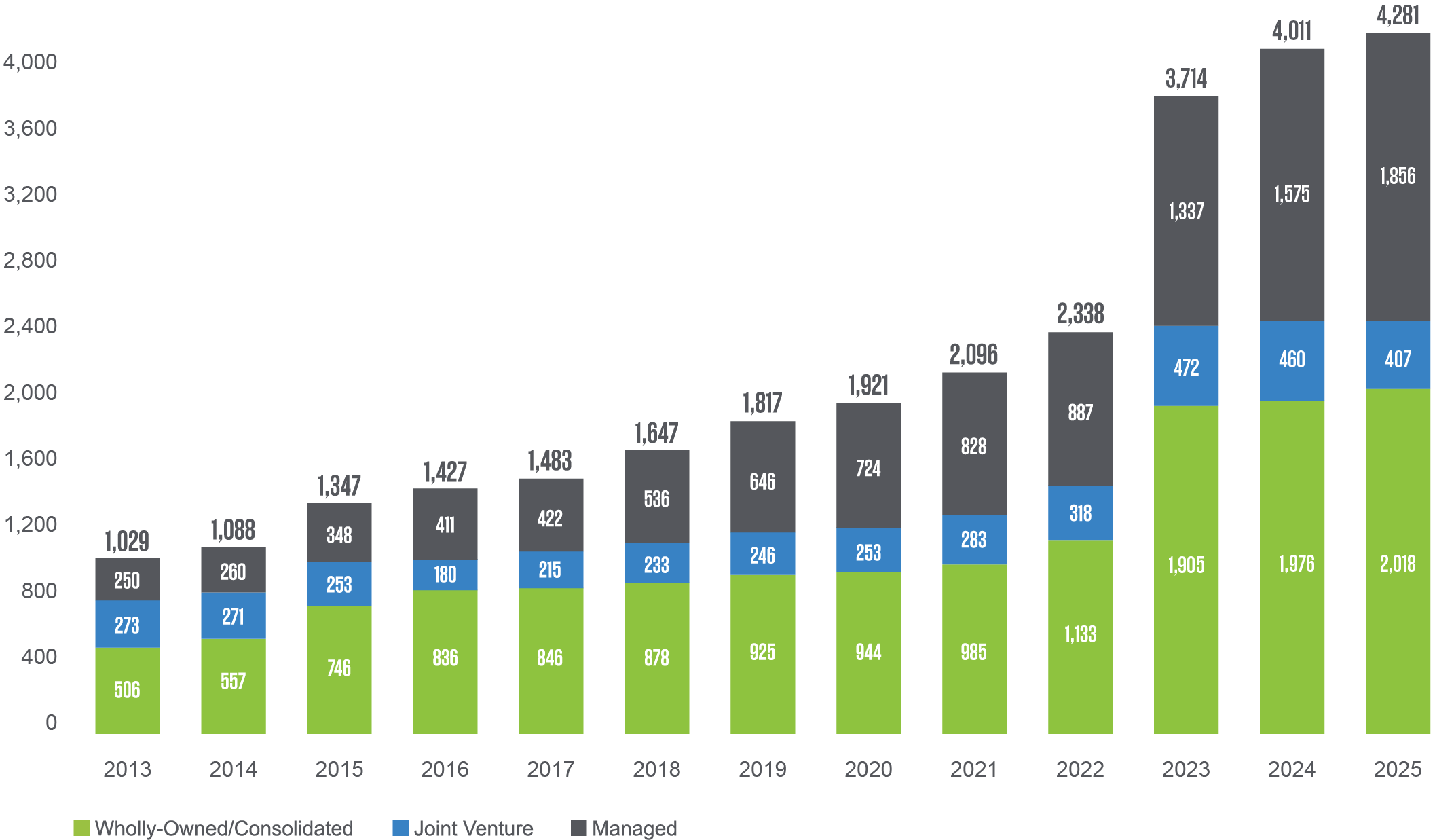 The growth of our portfolio through strategic acquisitions, partner buyouts, joint ventures, our bridge loan program, and the expansion of our third-party management platform continued to be key contributors to our success in 2025. Technology investments, property enhancements, and redevelopment initiatives further modernize the portfolio, reduce its effective age and help keep it competitive across our geographically diverse markets.
