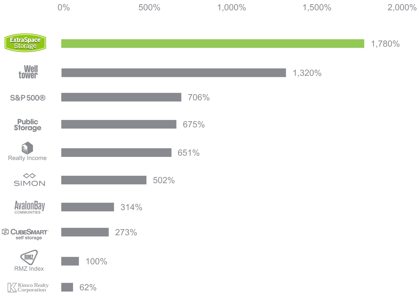 Extra Space Storage has Delivered a Top 20-Year Total shareholder Return in the REIT Sector